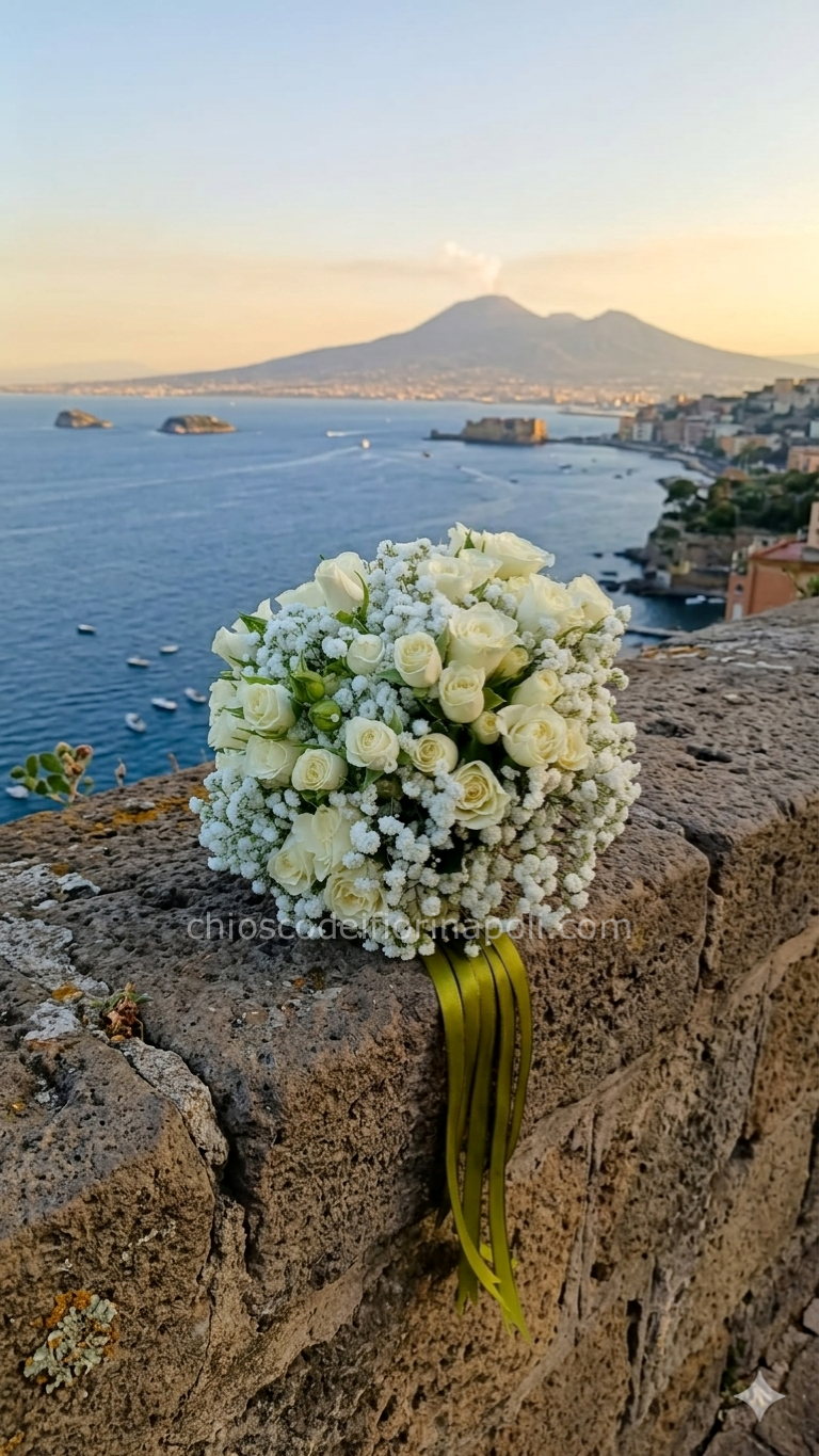 Elegante bouquet di rose bianche e gipsofila, simbolo di purezza e amore eterno. Perfetto per una promessa di matrimonio o per celebrare traguardi preziosi come le Nozze d'Argento e d'Oro. Un design classico e senza tempo che racchiude tutta l'emozione dei tuoi momenti più belli. Consegna in tutta Napoli.