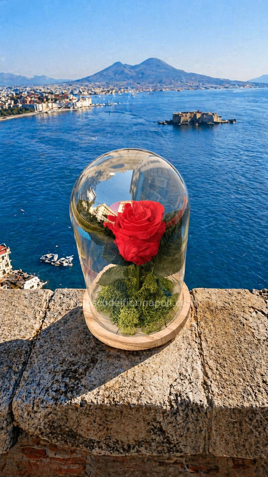 Elegante rosa stabilizzata racchiusa in una raffinata campana in vetro con base in legno naturale. Un regalo speciale per la Festa della Mamma, simbolo di amore sincero e affetto duraturo. La sua bellezza resta nel tempo ed è perfetta per decorare ogni ambiente con classe