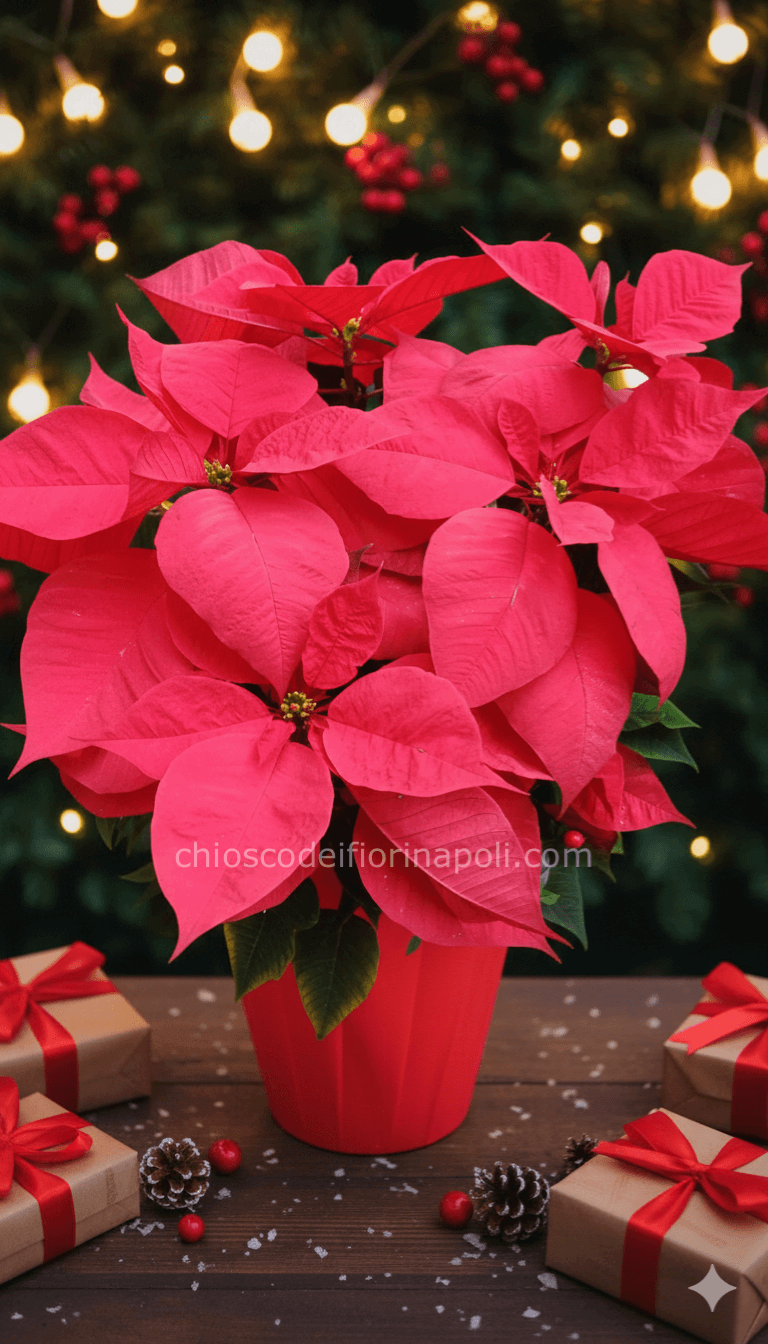 Bellissima Stella di Natale rossa in vaso, un simbolo vibrante delle feste! Ideale come regalo o decorazione. Consegniamo a domicilio in tutti i quartieri di Napoli: Vasto, Vomero, Chiaia, San Carlo all'Arena e Posillipo. Ordina ora per un tocco natalizio